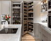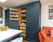 A well-designed larder cupboard keeps packaging and clutter hidden behind clean doors, creating a streamlined look.