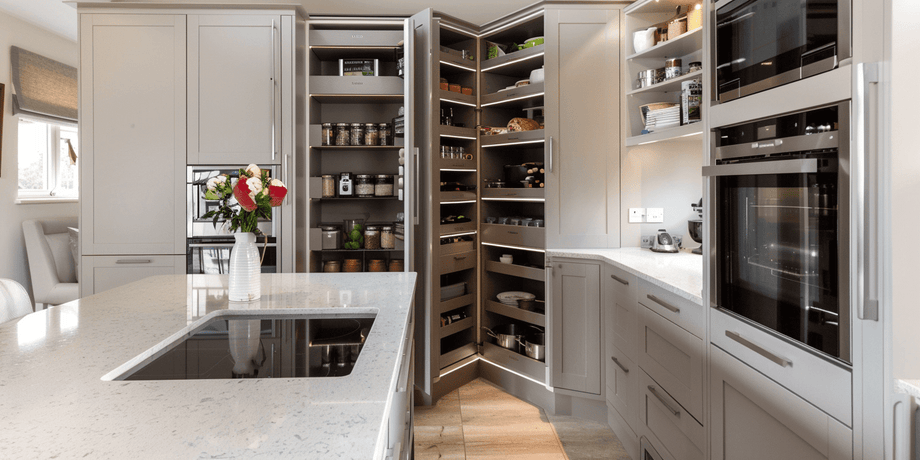 Corners are often underutilised. Modern corner cupboard solutions include rotating carousels, pull-out swing trays, and angled units that eliminate dead space.