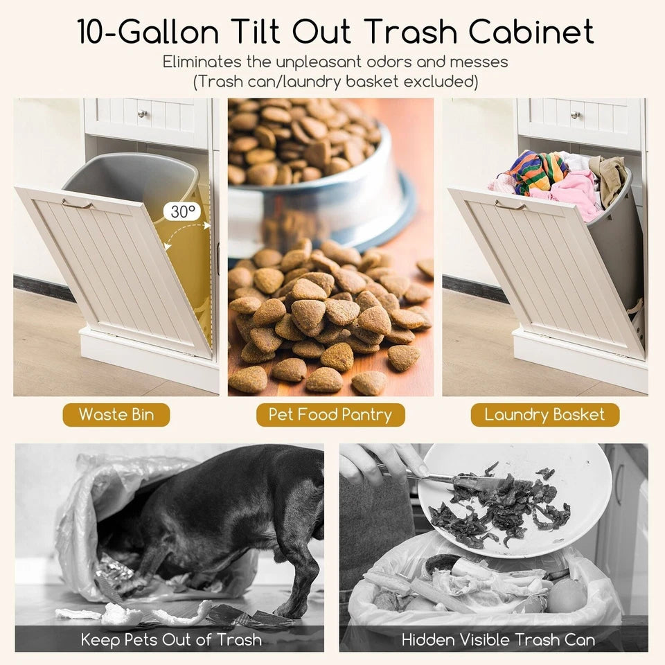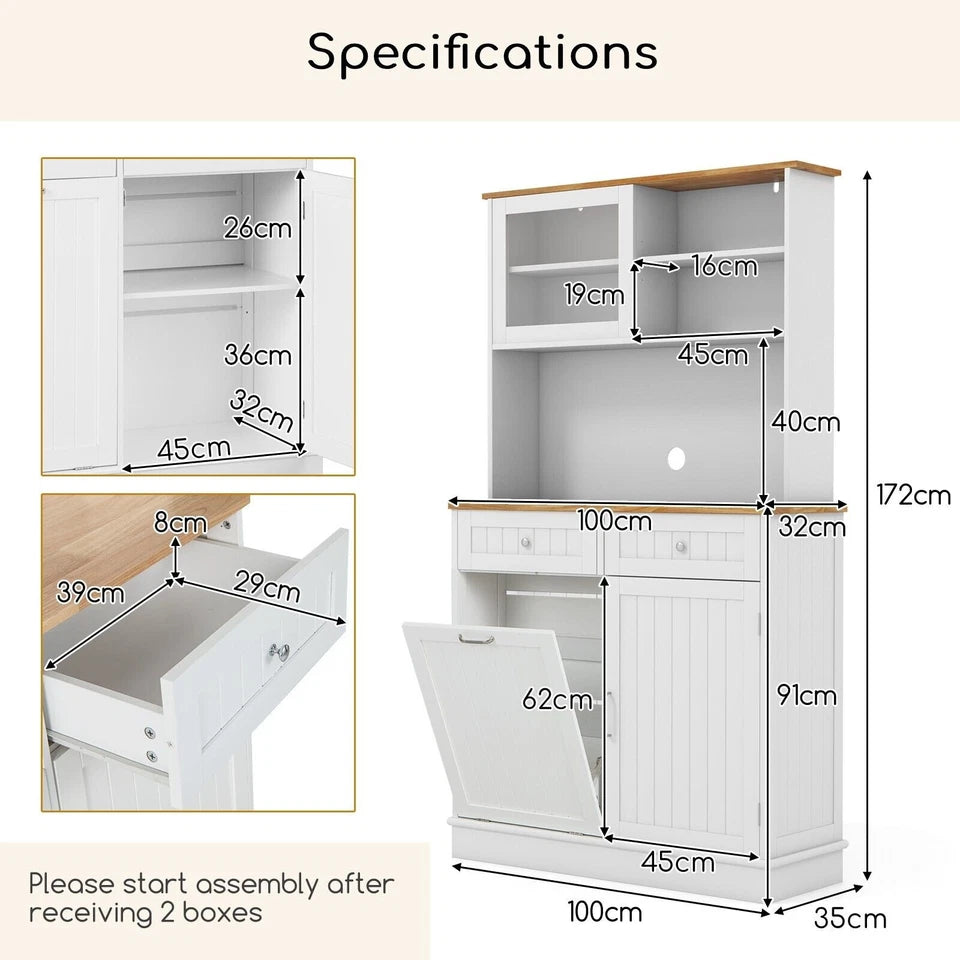 The Avery Kitchen Storage Pantry Cupboard combines smart waste management with elegant storage — the perfect space-saving solution for modern homes. Featuring a unique tilt-out trash cabinet, this unit conceals unsightly bins while keeping your kitchen clean and organized.