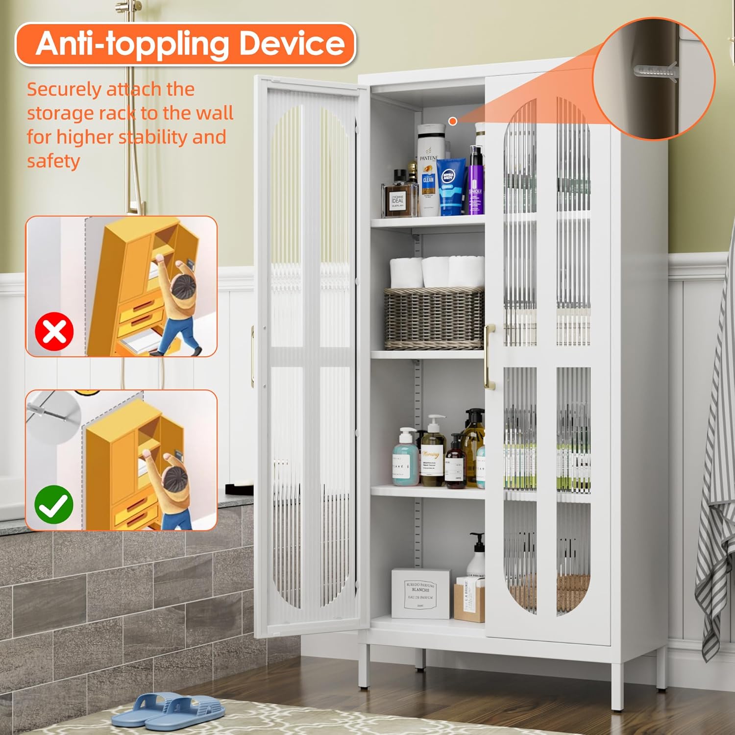 - 2 Doors, 3 Shelves (Adjustable)