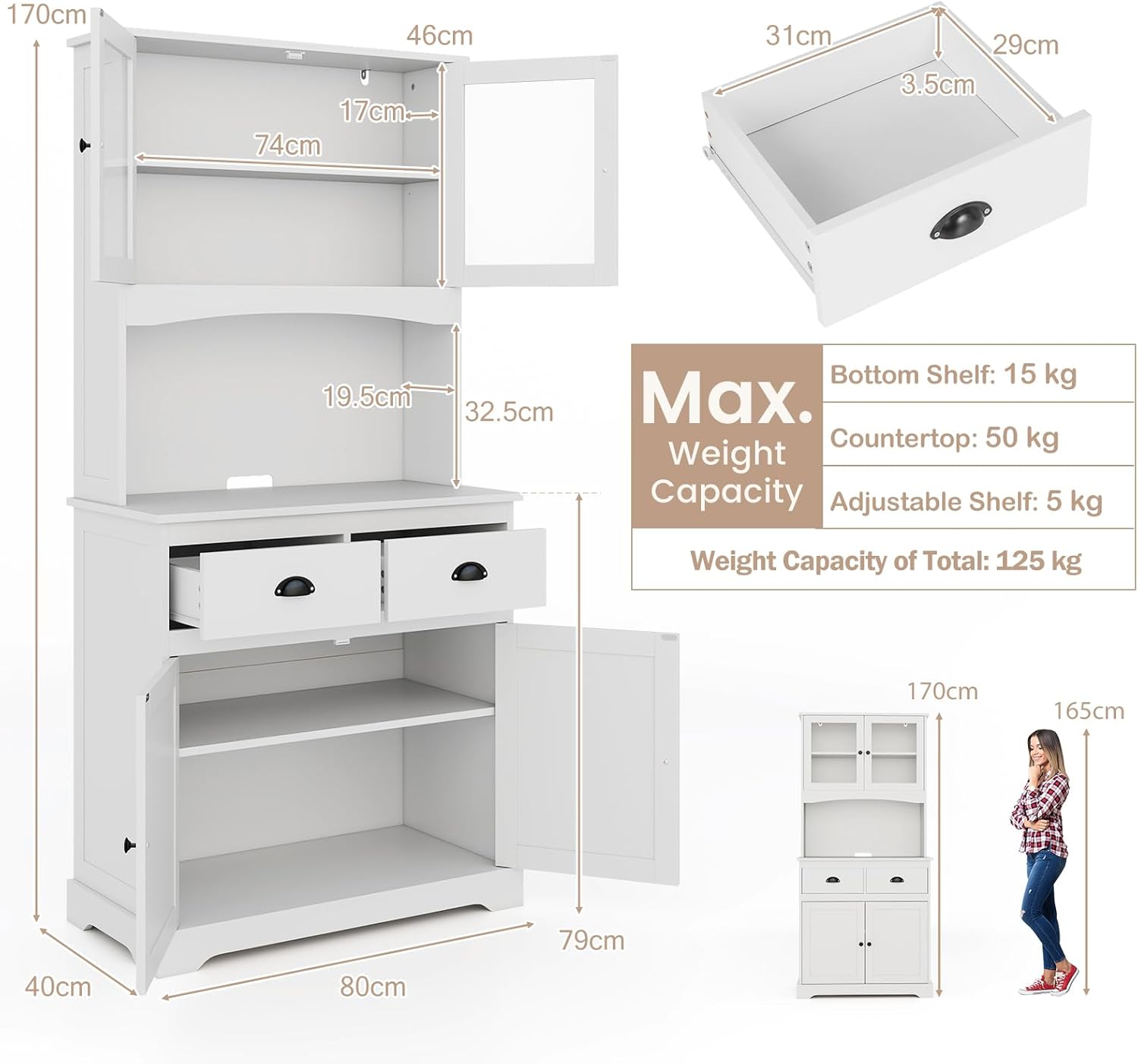 • Dimensions: 80 x 40 x 170 cm (W x D x H)