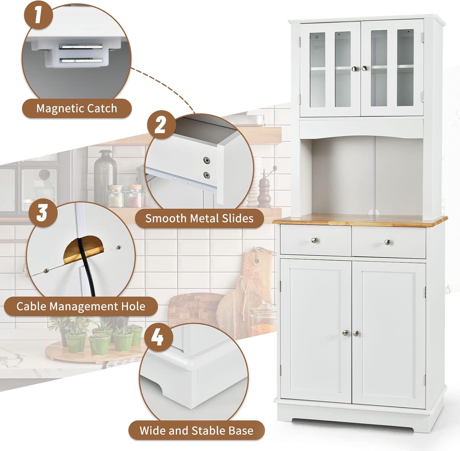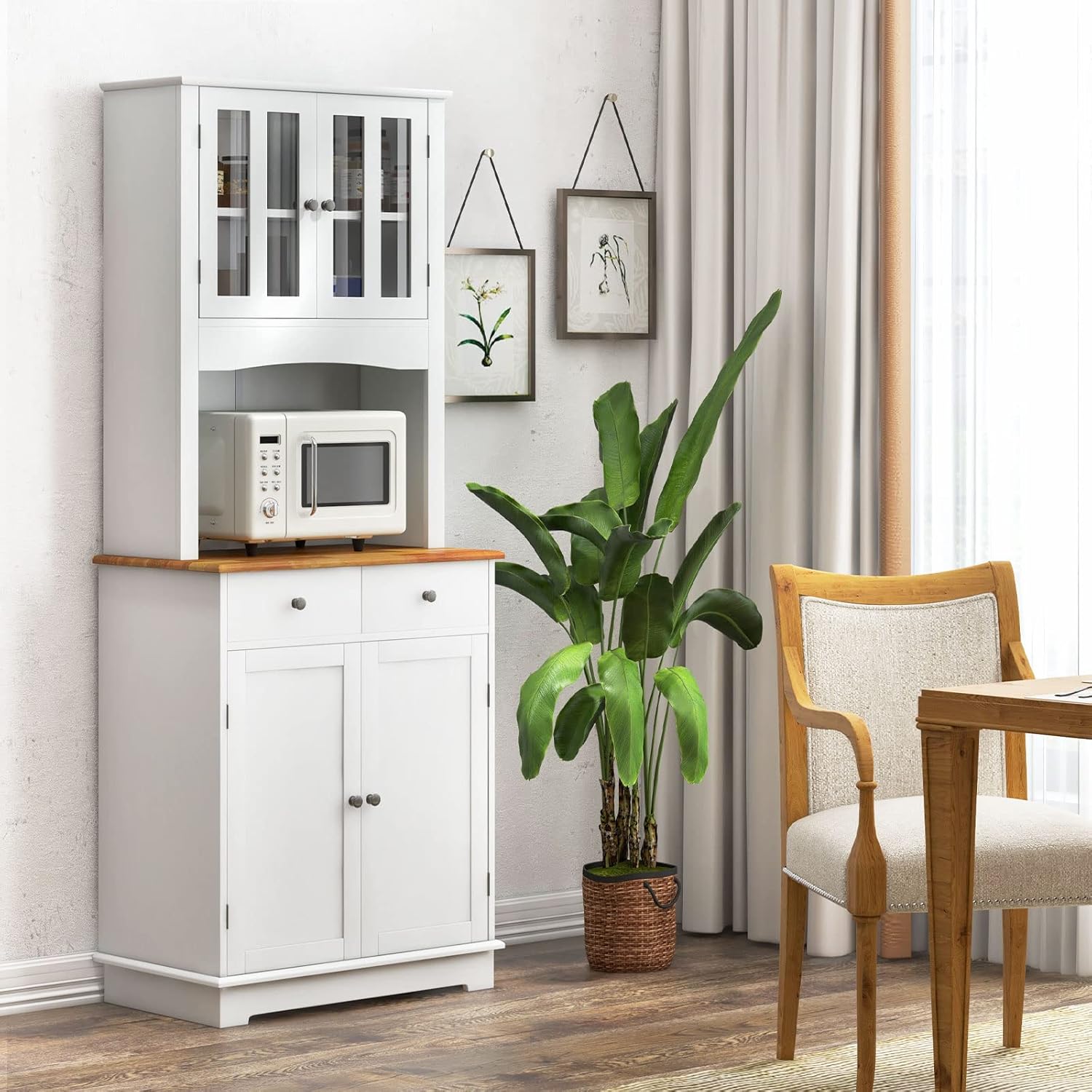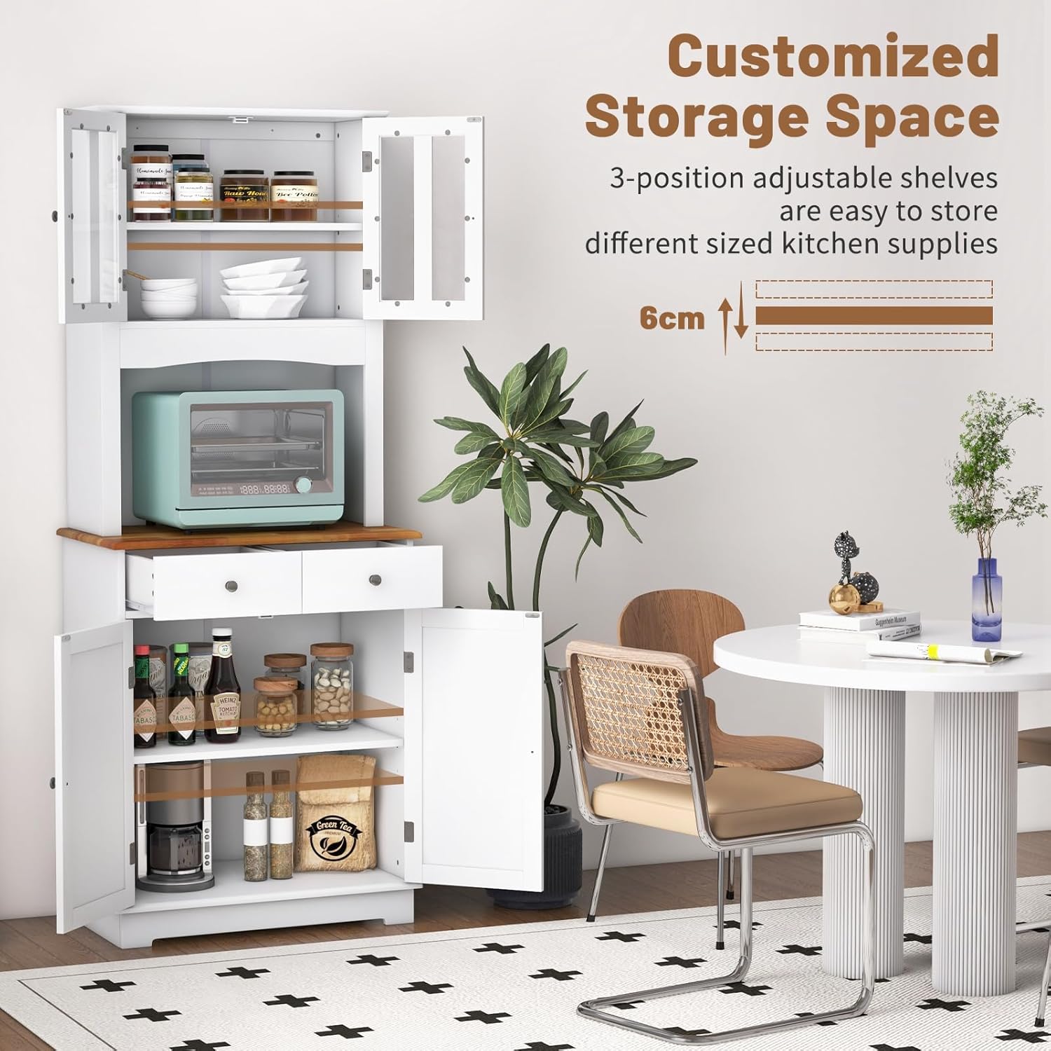 - Perfect for use as a kitchen pantry, sideboard, or display cabinet in any room.