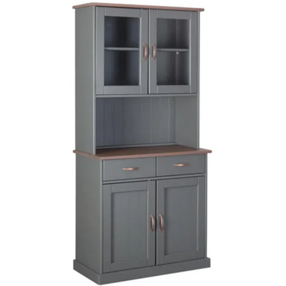 With visible shelves, it offers opportunities to showcase decorative objects, allowing you to add colorful accents to your kitchen decor. The cupboard features 2 drawers, 2 shelves, and a total of 4 doors, providing ample storage space for your kitchen essentials.