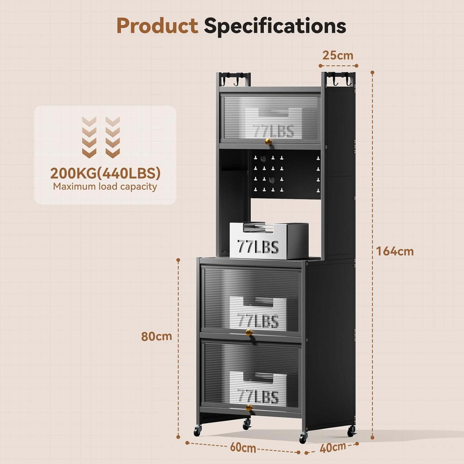 Keep your kitchen tidy and stylish with the Cecil Kitchen Storage Pantry Trolleys in Black, a modern and functional storage solution that combines industrial style with high practicality. Designed with 5 spacious tiers, this freestanding storage trolley offers generous space for kitchenware, pantry items, or decorative pieces. The middle section perfectly fits appliances like a microwave or coffee maker, with a convenient back gap for cable management — keeping your setup neat and clutter-free.