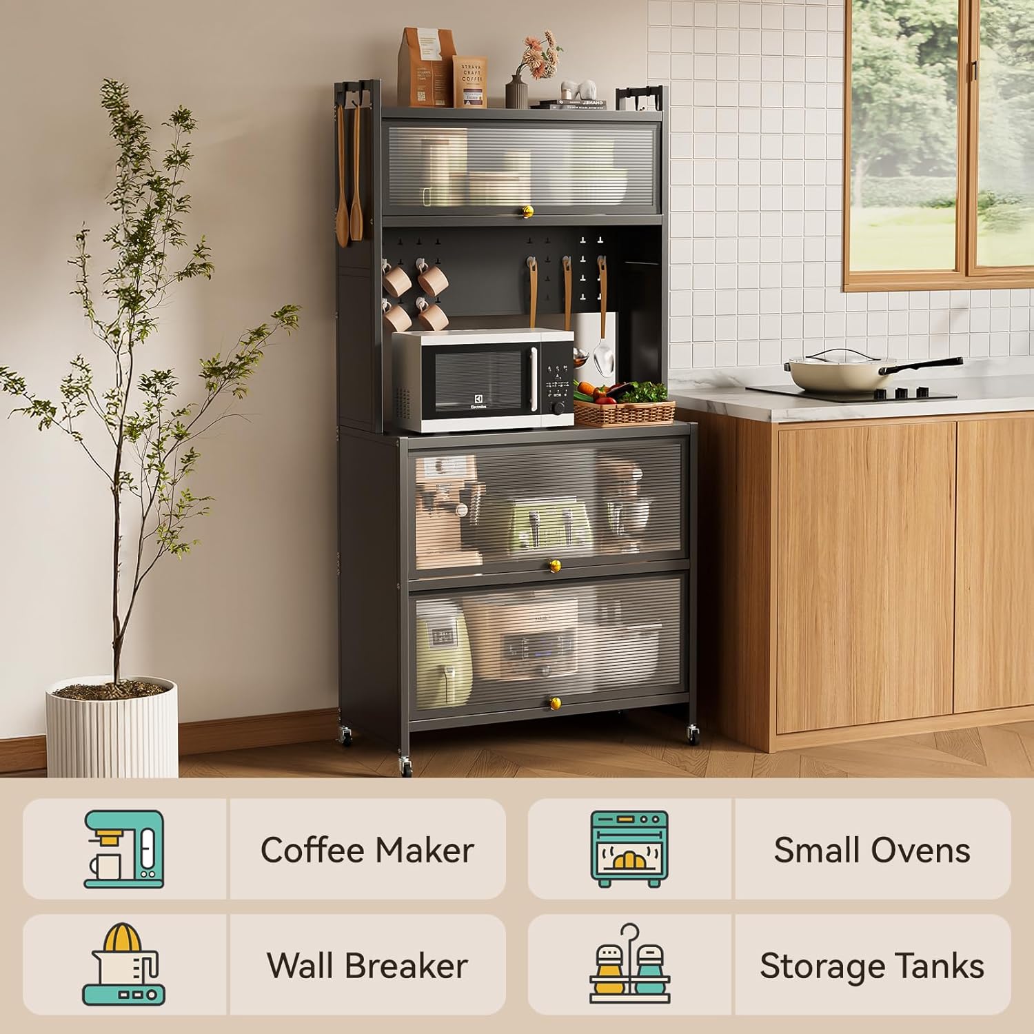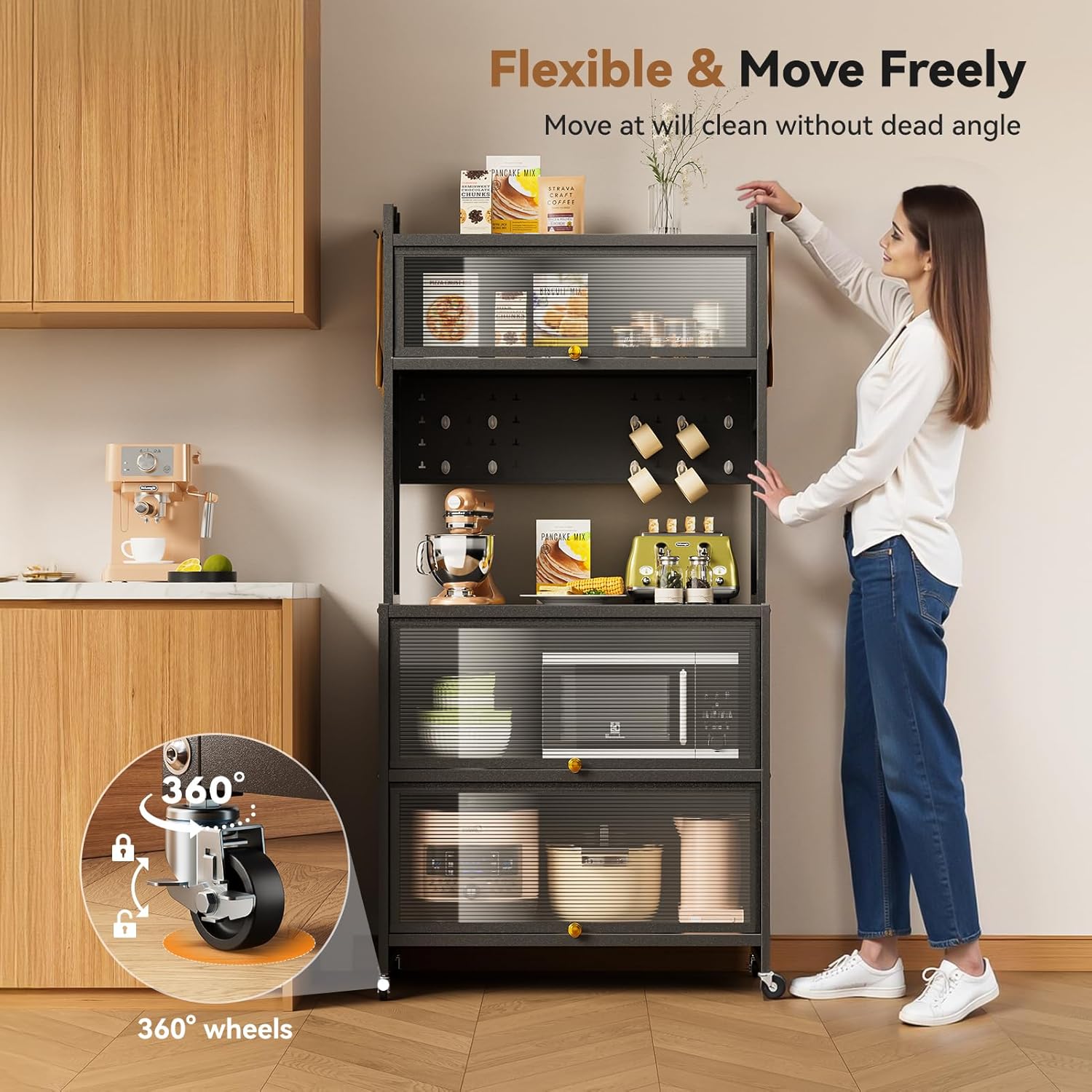 Built with a sturdy metal frame and semi-transparent wave-pattern PC doors, this pantry trolley blends durability with contemporary design. The flip-up door panels slide effortlessly into internal rails, saving space while protecting your stored items from dust. Equipped with four flexible wheels (two lockable), this mobile cabinet glides smoothly across your floor, allowing easy repositioning anywhere — kitchen, dining area, or even your study. Functional, elegant, and durable, the Cecil Pantry Trolley is a versatile must-have for any modern home.