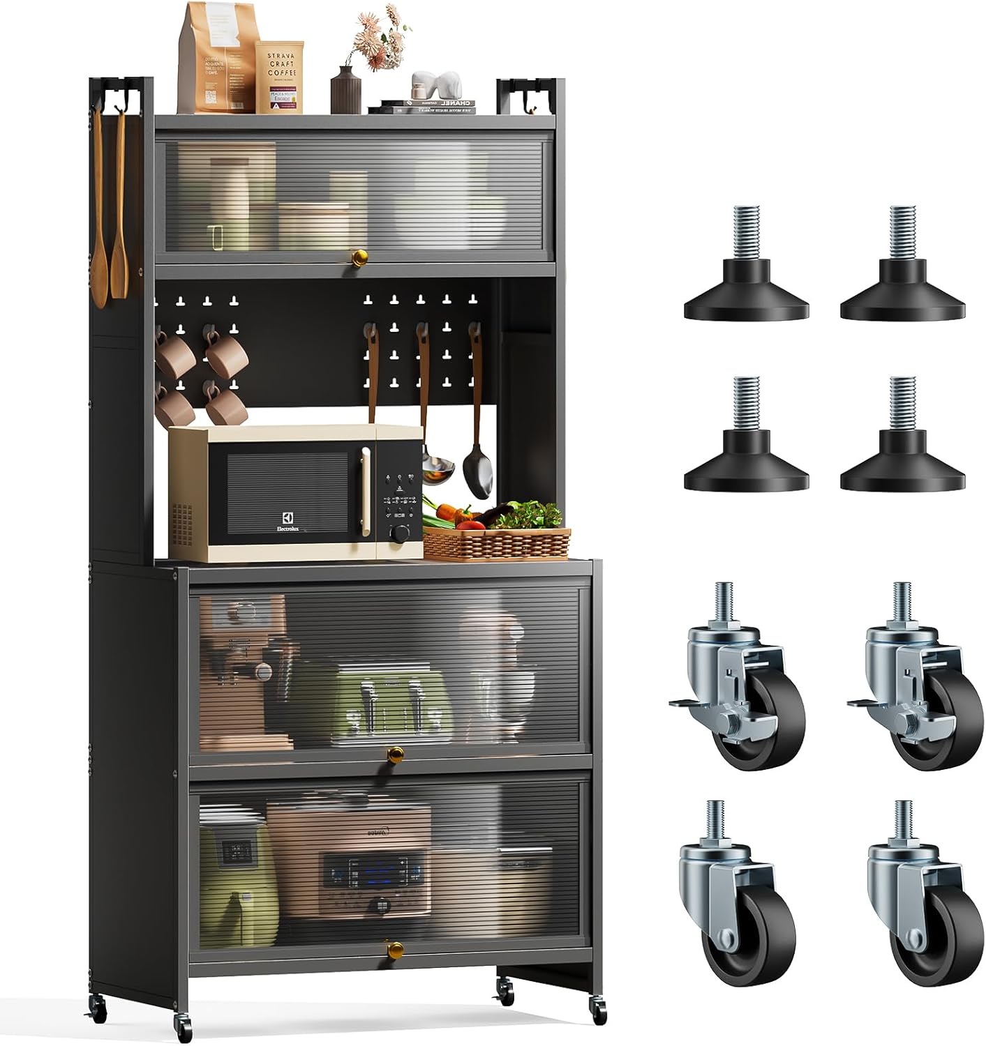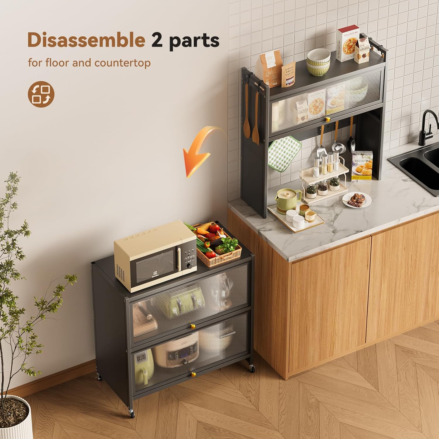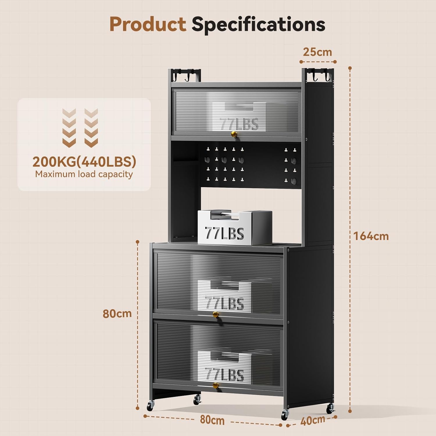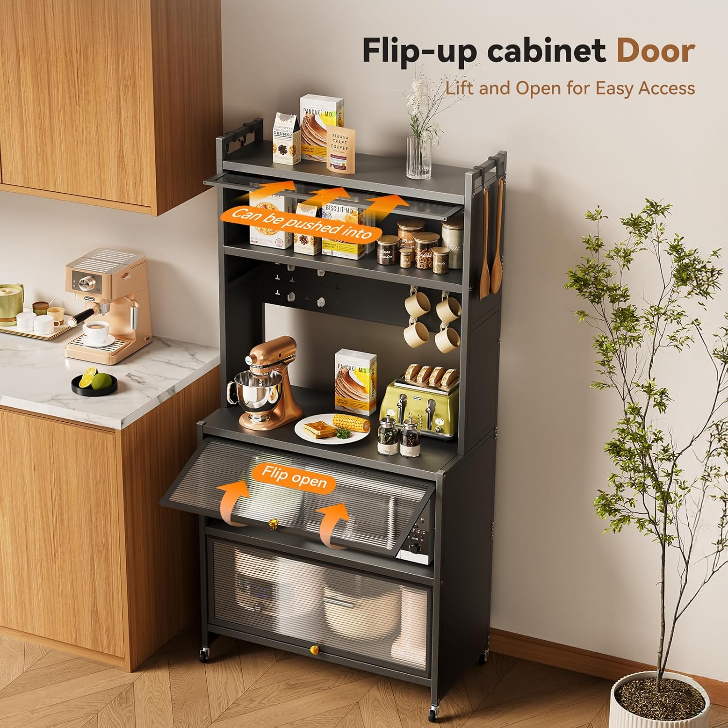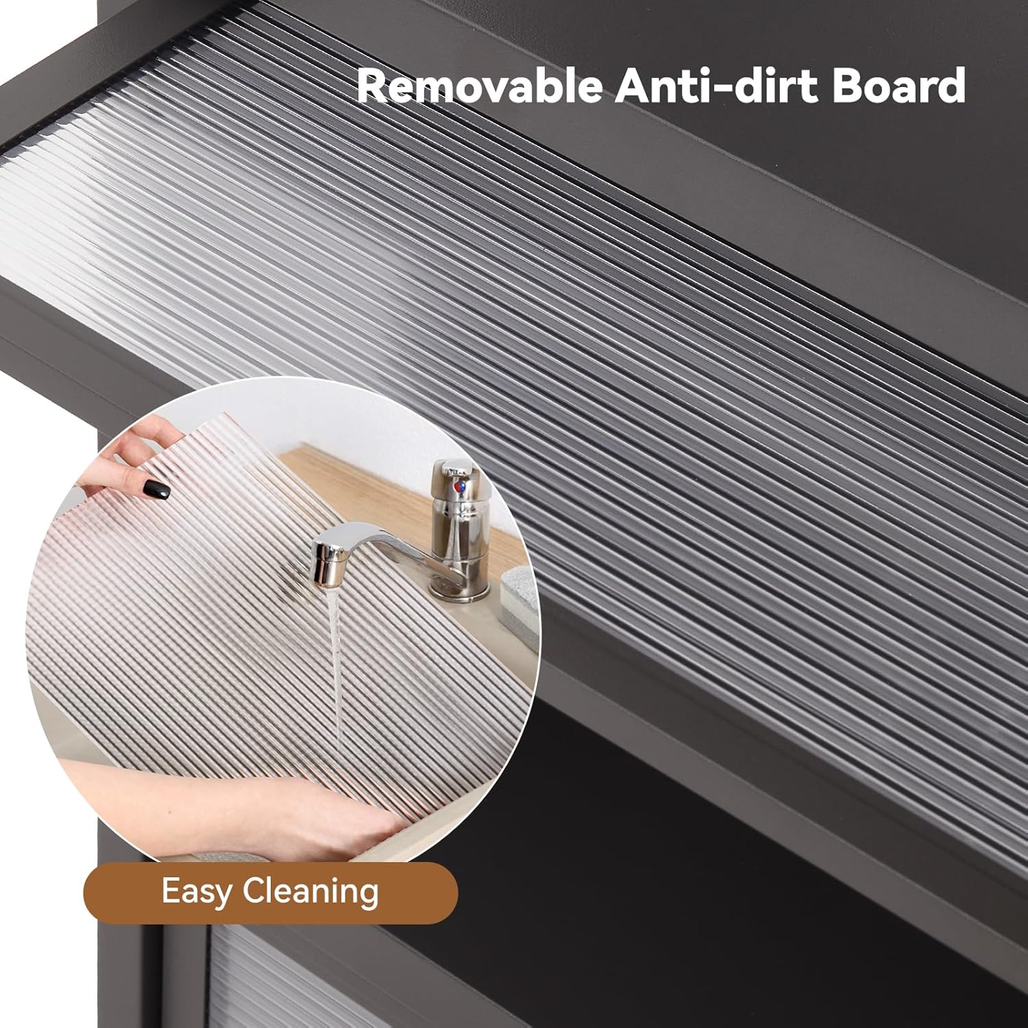 Built with a sturdy metal frame and semi-transparent wave-pattern PC doors, this pantry trolley blends durability with contemporary design. The flip-up door panels slide effortlessly into internal rails, saving space while protecting your stored items from dust. Equipped with four flexible wheels (two lockable), this mobile cabinet glides smoothly across your floor, allowing easy repositioning anywhere — kitchen, dining area, or even your study. Functional, elegant, and durable, the Cecil Pantry Trolley is a versatile must-have for any modern home.