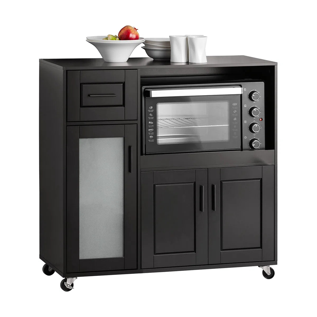 - 4 Adjustable Shelves, 1/2 Drawers, 3 Doors, Lockable Wheels