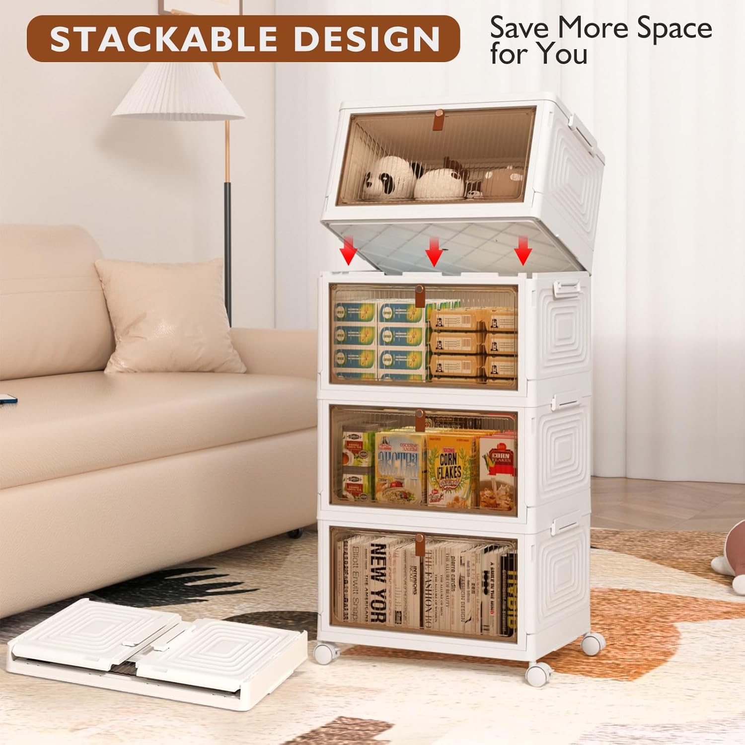 Organize your home with ease and elegance using the Linden Kitchen Storage Pantry Trolleys in White. This 4-tier storage system offers a clean, minimalist look with practical functionality — perfect for kitchens, bedrooms, or offices. Each storage box features a generous 23L capacity, allowing you to neatly store snacks, cleaning supplies, clothes, or daily essentials. Designed with dual access openings, you can conveniently retrieve items through the top lid or the magnetized front door, keeping everything dust-free while maintaining easy accessibility.
