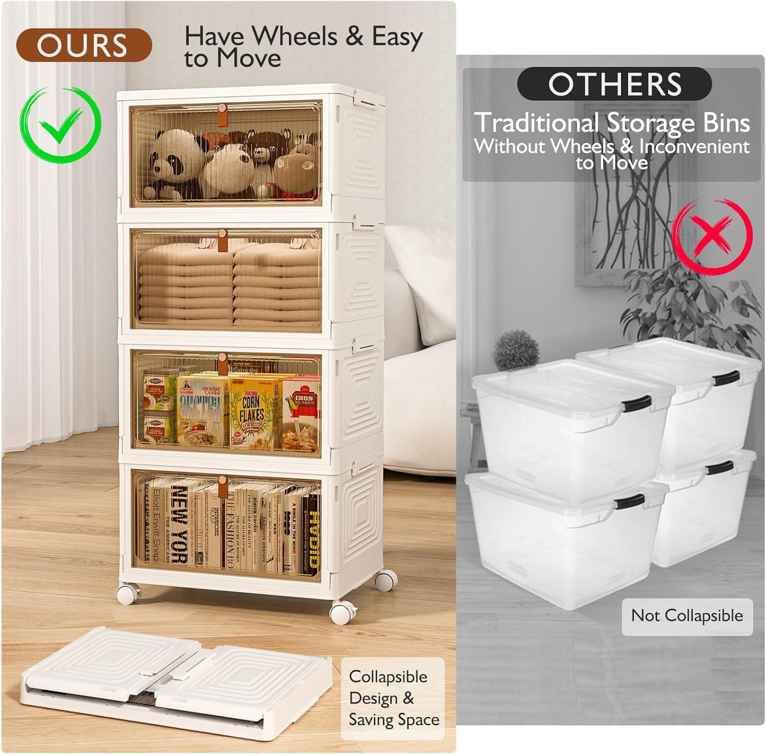 • 4-Tier Storage, Lightweight and easy to move, Dual opening