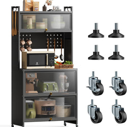 Cecil Kitchen Storage Pantry Trolley 80x40x162 - Black