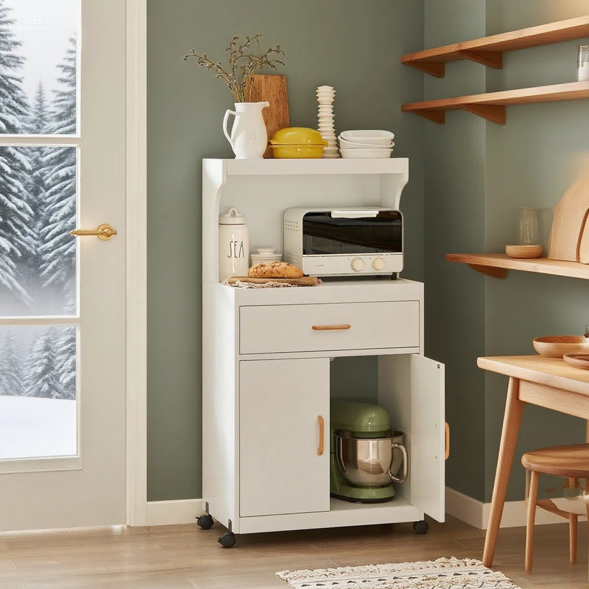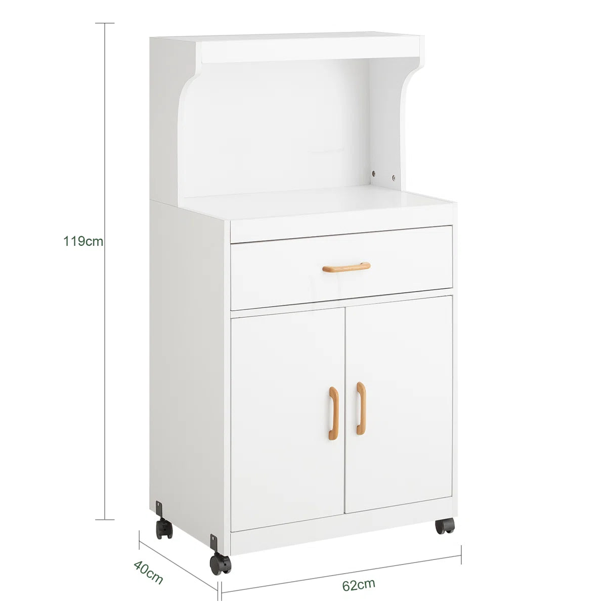 Includes a drawer, two cupboards, and two open shelves for storing kitchenware, appliances, or pantry items.