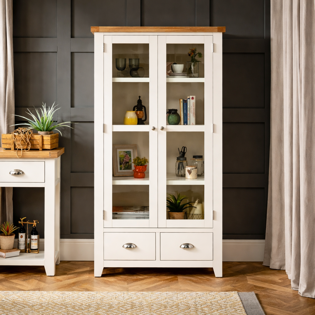 With its contemporary yet useful design, the Gunnar Kitchen Storage Cupboard will be a lovely addition to your kitchen. This elegant freestanding kitchen storage cabinet is made of oak and has a stunning cream finish. The Kitchen Storage Cupboard offers four shelved areas within the two-door cabinet.