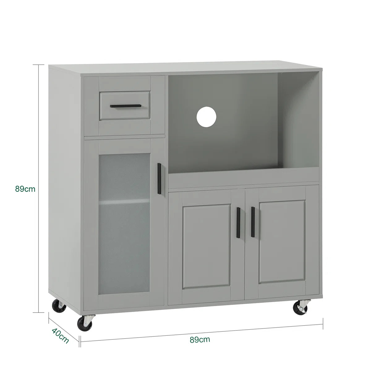 Add a touch of modern elegance and practicality to your kitchen with the Joey Kitchen Storage Trolley. Combining the sleek look of light grey MDF panels with glass accents, this versatile piece offers a perfect balance of style and functionality. Whether used as a kitchen island, microwave stand, or serving trolley, its smart storage layout helps you keep everything neat and accessible. With durable construction and smooth-rolling wheels, it’s designed to simplify your kitchen routine while enhancing your space’s overall look.