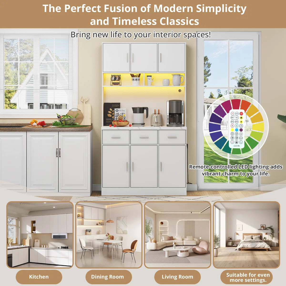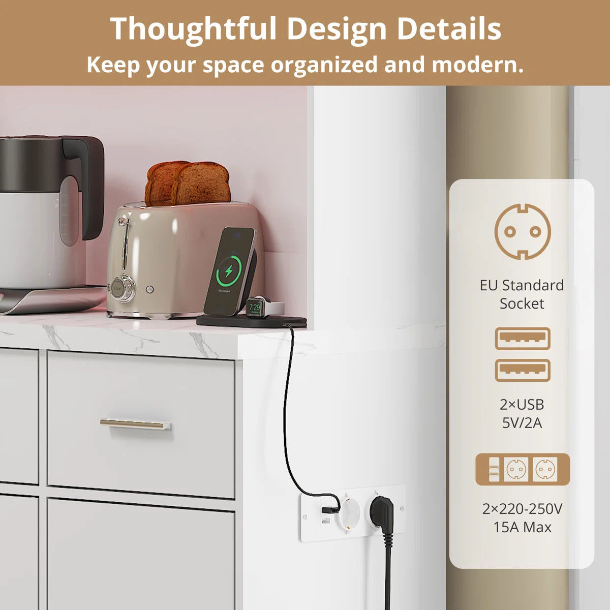 Transform your kitchen or dining area with the Matthew Kitchen Storage Pantry Cupboard, a modern multi-functional unit designed to blend smart technology with stylish practicality. Crafted in a white finish, this tall cabinet features built-in LED lighting and integrated power outlets, offering both beauty and convenience in one sleek design. With its spacious compartments, adjustable shelving, and durable waterproof countertop, it’s ideal for organizing kitchen essentials while adding a touch of sophistication to your home.