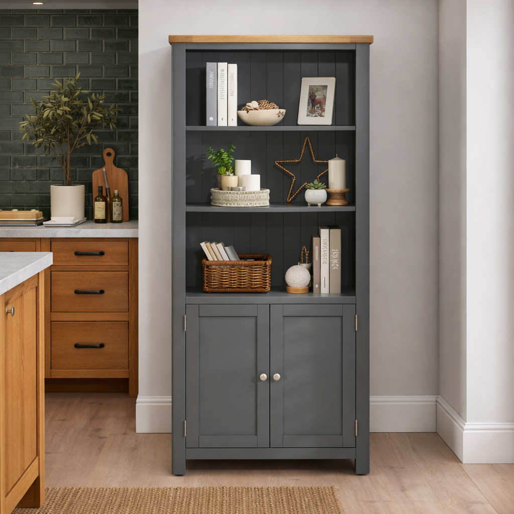 Mattie Kitchen Storage Pantry Bookcase Cupboard - Slate Grey