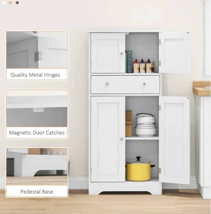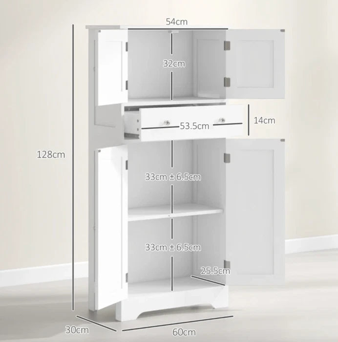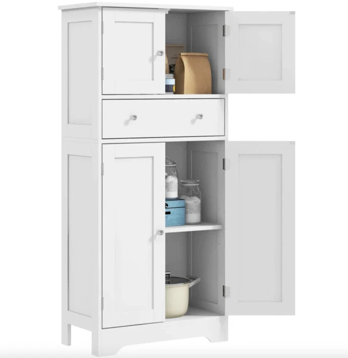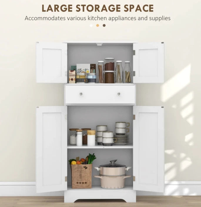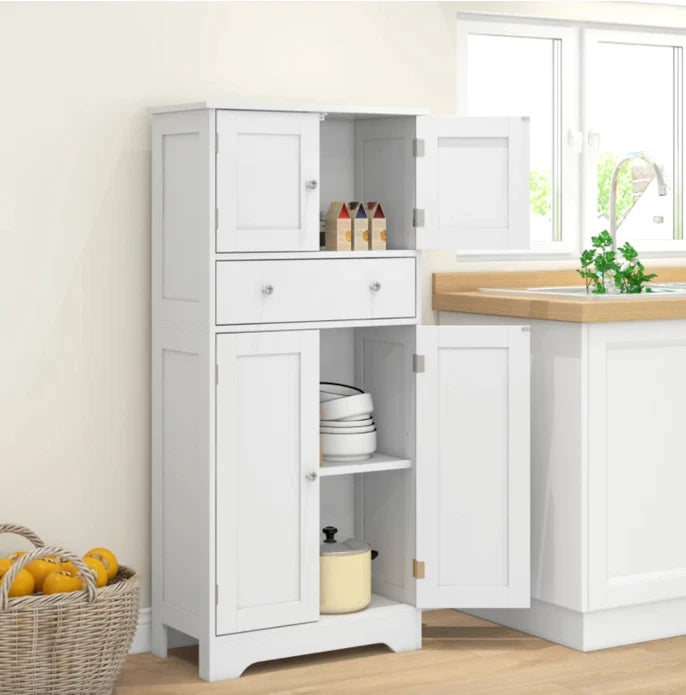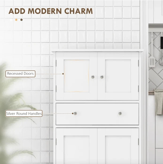 Add a touch of modern elegance to your kitchen with the Nathan Kitchen Storage Cupboard. This compact yet spacious pantry unit is designed to keep your home organized and clutter-free. Featuring a multi-functional storage layout with a top cabinet, middle drawer, and bottom cupboard, it provides ample space for storing dinnerware, cookware, utensils, food items, and other kitchen essentials.