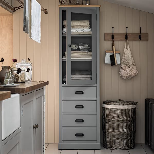 The Painswick Larder Cupboard will make a wonderful addition to your room with it's modern yet practical design. This attractive Larder Unit is constructed from painted and completed in a striking grey painted finish. The Larder Cupboard comes with four spacious drawers and adjustable shelves.